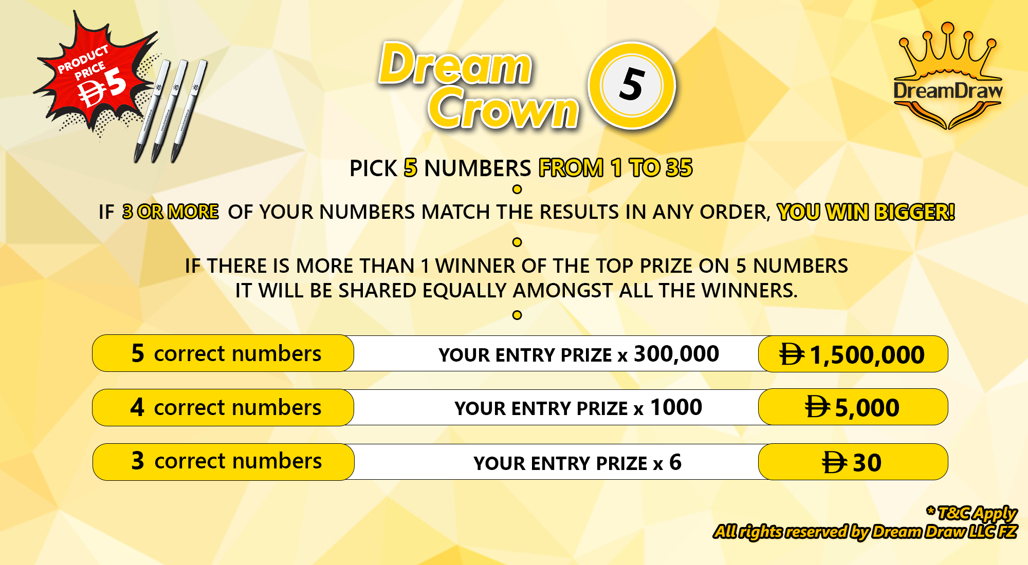 Product Prize: The cost of participating in DREAMCROWN 5 is AED 5.
